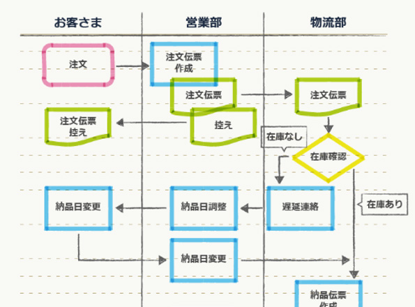 文具メーカーの物流部に勤める主人公が、上司から考え方の甘さや報告の曖昧さを指摘されながらも、業務改善のために奮闘します。