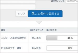 また同じ講座を受講している他人の平均集中度も表示されていますので、他人と比較して競争意識を持って意欲的に学習できます。