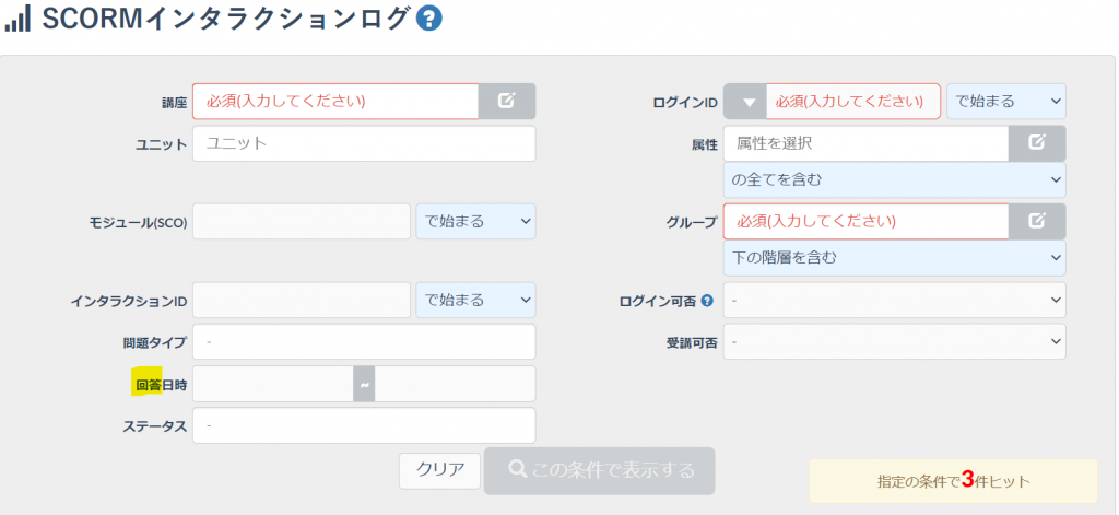 また、管理画面>SCORMインタラクションログ画面の「回答日時」、CSVダウンロードの「インタラクション回答一覧」についても、それぞれ「解答」へ変更いたします。