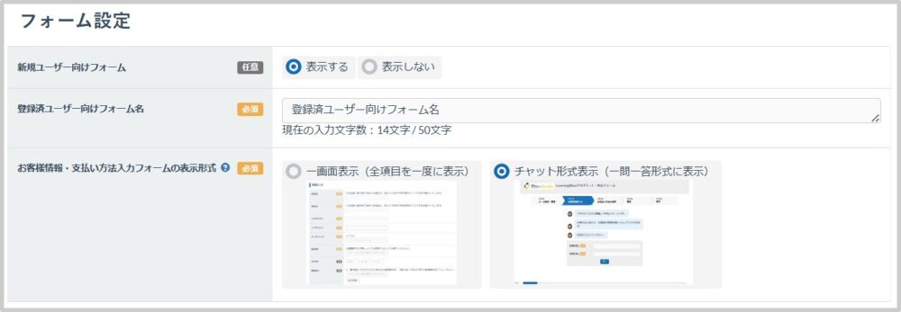 ▼管理画面>販売設定>フォーム設定>お客様情報・支払い方法入力フォームの表示形式