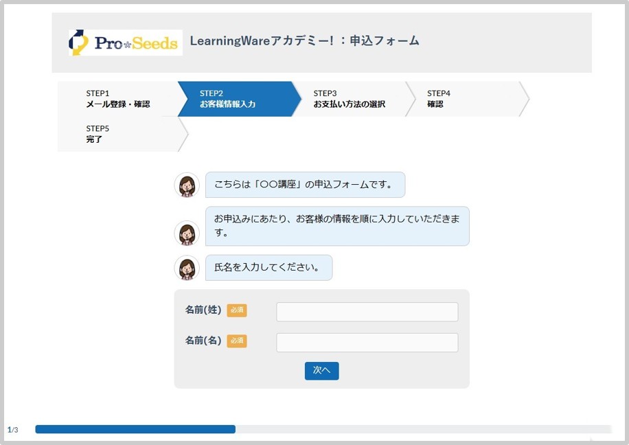入力項目が1つずつ順番に表示されるため、ユーザーは画面の案内に沿って回答していくだけで入力を進められるようになります。
