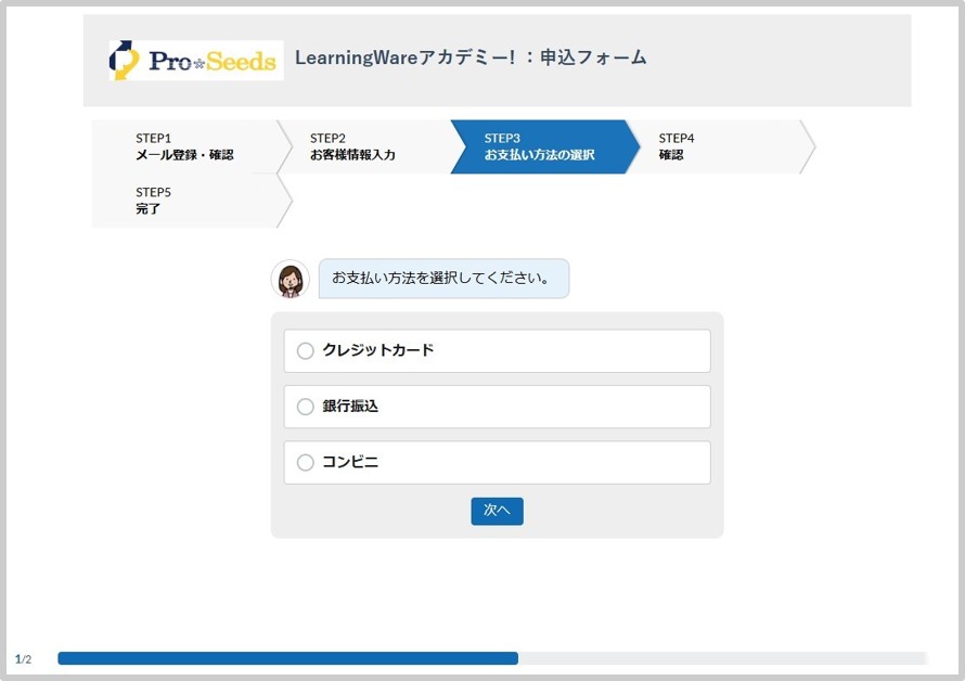 (新規ユーザー向けのお申込フォーム>お客様情報入力画面/支払い方法選択画面)