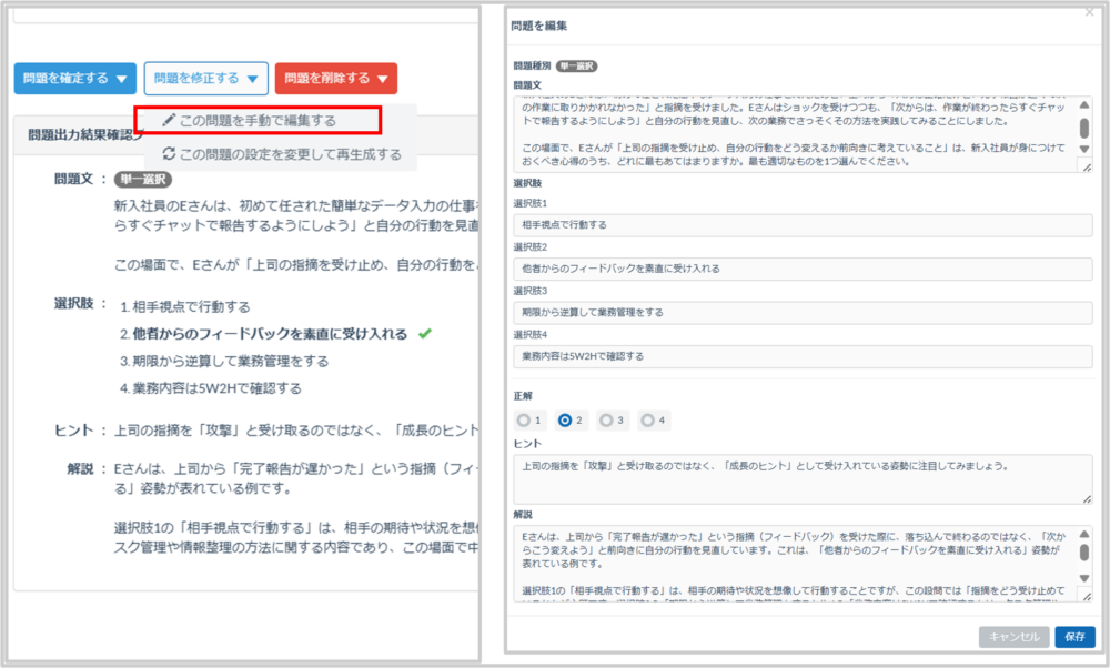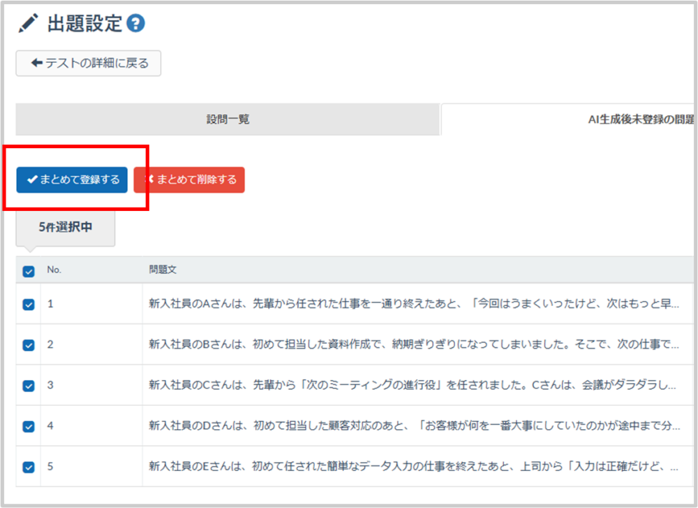 また生成されたすべての問題を登録する必要はなく、登録したい問題を選択して登録できます。