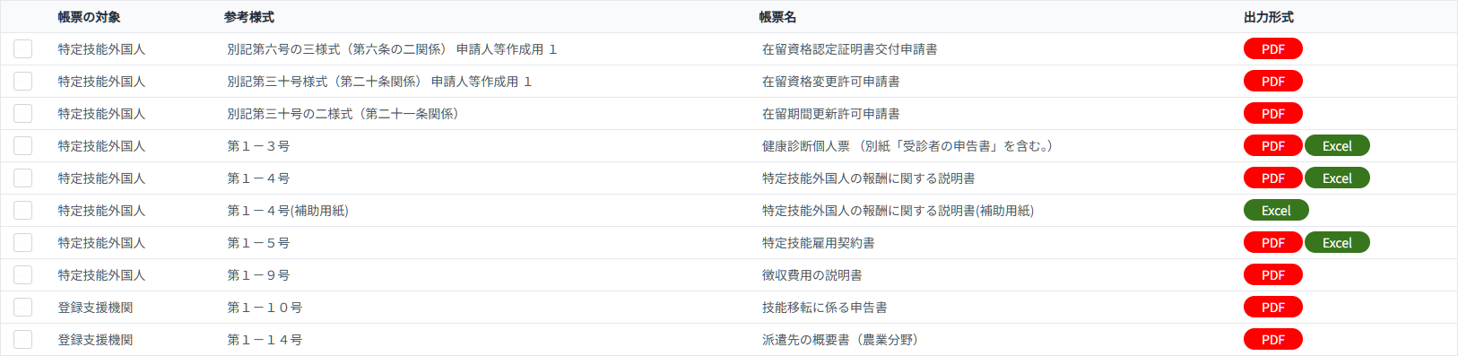 これにより、入管庁が定める備付帳簿に対応でき、さらに登録データを自動入力することで転記ミスの防止にもつながります。