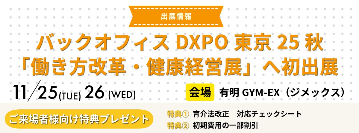 育休・産休サポートツール『armo [アルモ]』を提供する株式会社プロシーズ(代表取締役:花田 隆典、以下プロシーズ)は、2025年11月25日(火)〜26日(水)に有明GYM-EX(ジメックス)にて開催される「バックオフィスDXPO東京25秋」に出展いたします。